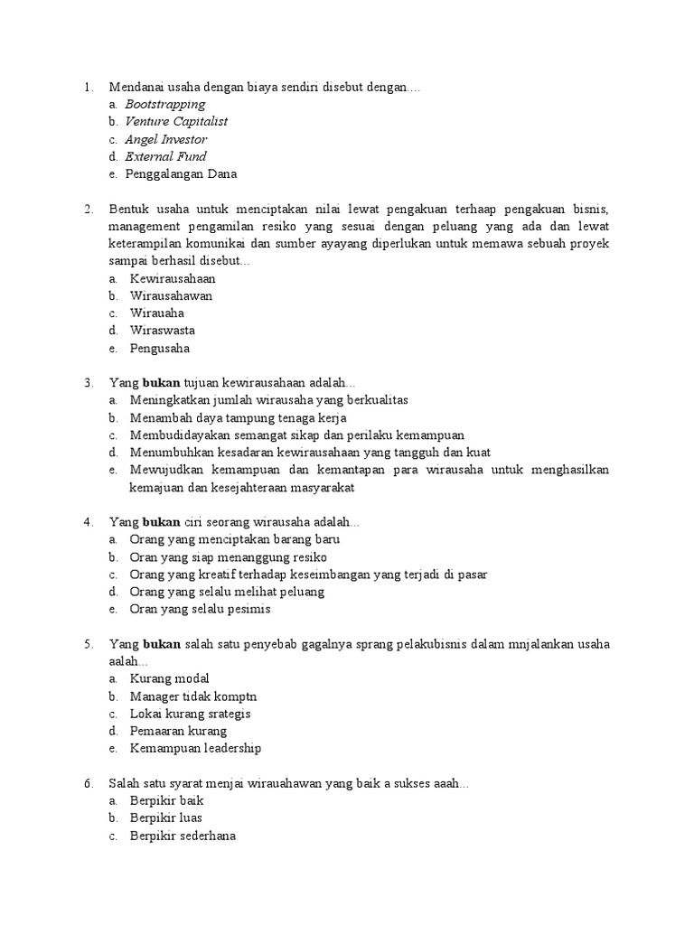 39 yang bukan salah satu penyebab gagalnya seorang pelaku bisnis dalam menjalankan usaha adalah