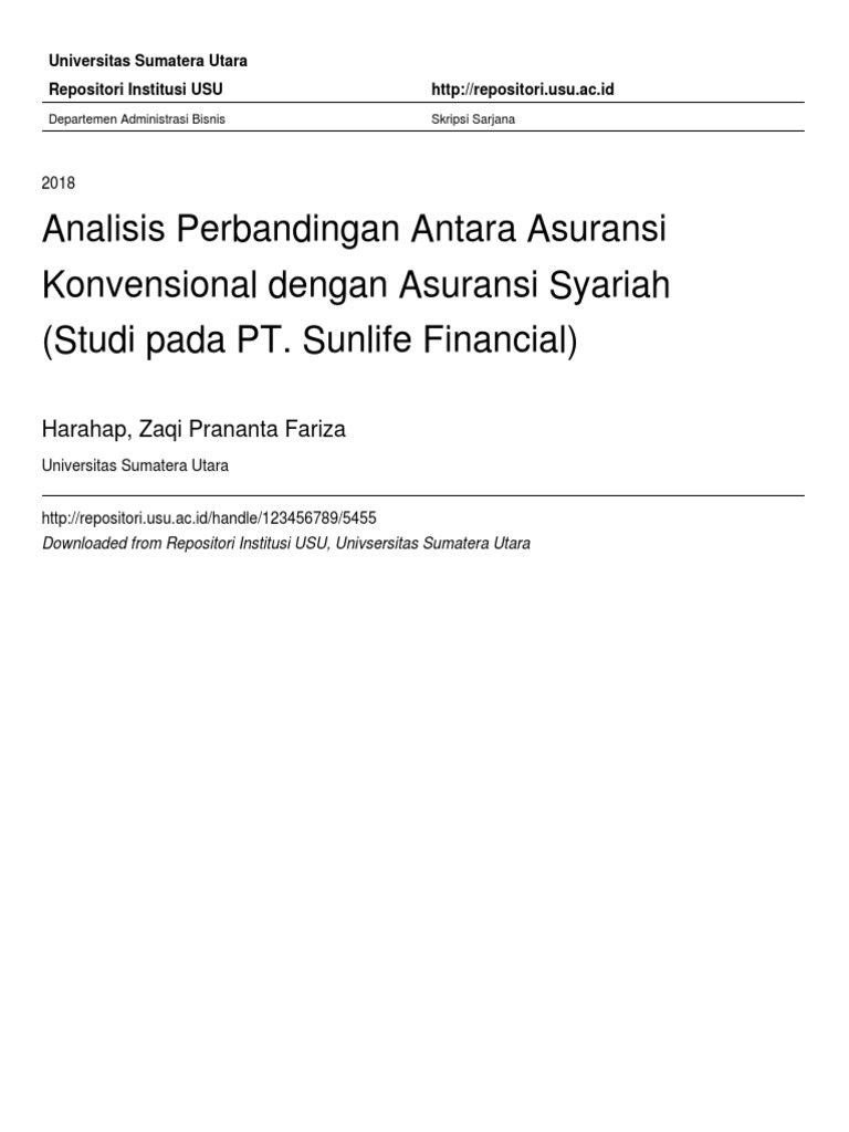 10 Contoh Skripsi Tentang Asuransi untuk Penelitian Mahasiswa Akhir. Oleh ukmsumut. Skripsi merupakan karya tulis ilmiah yang ditulis oleh mahasiswa akhir sebagai salah satu syarat dalam meraih gelar sarjana, di perguruan tinggi. Skripsi dibuat berdasarkan fakta dan data yang menggunakan metode dan alat penelitian. Mar 19, 2018 — ... YANG MEMPENGARUHI MINAT MASYARAKAT DALAM MEMILIH ASURANSI BERBASIS SYARIAH ... SYARIAH. Skripsi thesis, UIN SUNAN KALIJAGA YOGYAKARTA.
