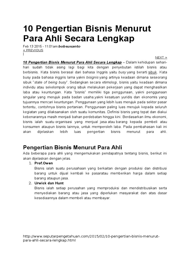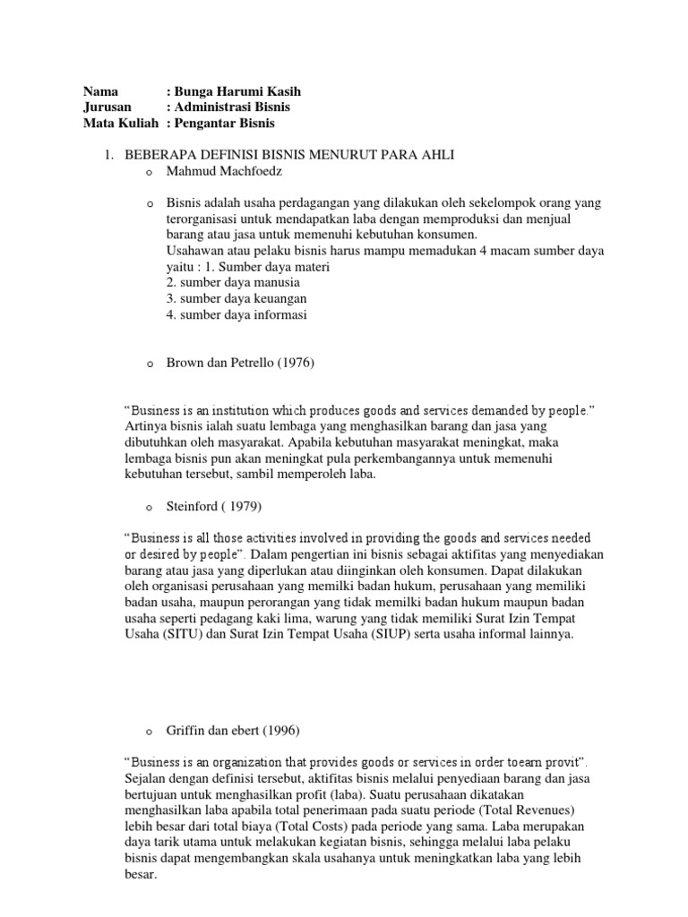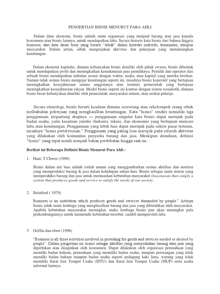 Definisi bisnis menurut para ahli
