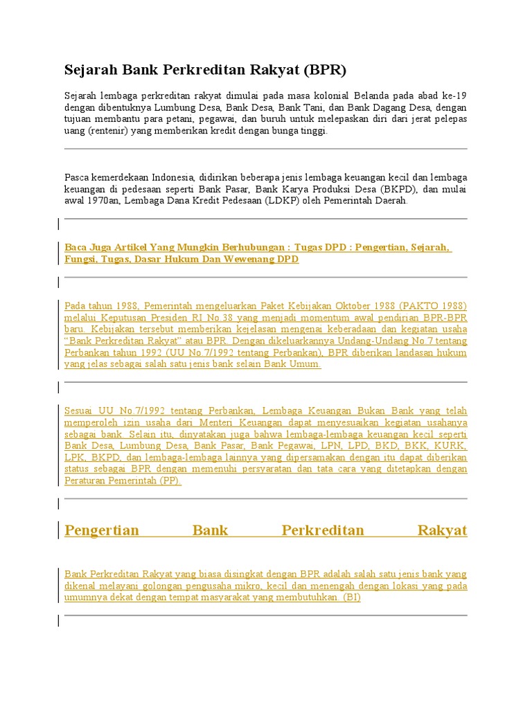 Pengertian Bank Perkreditan Rakyat A Pengertian Bank Perkreditan Rakyat Menurut Uu No 7 Tahun 1992 Tentang Perbankan Bpr Adalah Bank Yang Melaksanakan Course Hero