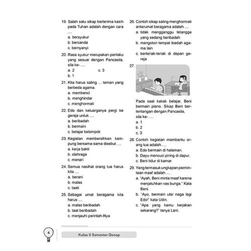 Soal PAS/UAS PENDIDIKAN AGAMA KATHOLIK Kelas 4 SD/MI Semester 2 ( Genap) 2019 Lengkap Kunci Jawaban ini bisa digunakan untuk latihan menghadapi UAS semester genap tahun pelajaran 2018/2019. Bentuk Soal PAS/UAS PENDIDIKAN AGAMA KATHOLIK Kelas 4 SD/MI Semester 2 terdiri atas Pilihan Ganda (PG) dan uraian.