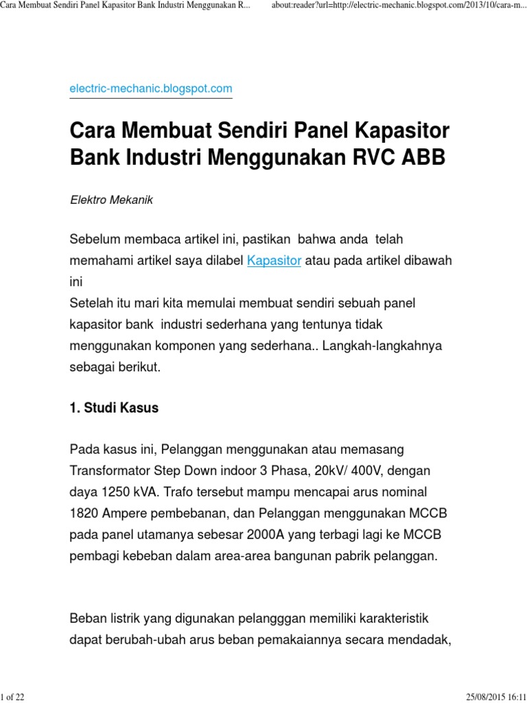 Cara Menghitung Kvar Kapasitor Bank. optimalisasi kapasitor bank. Capacito Bank 240KVAR, 12 step @20KVAR/440VAC : 1. Books Panel TOTEN EKs China IP-65, 800x800x2000mm. 2. Capacitor Axial 20KVAR 440VAC, ... biar kagak lupa ajah. Tujuan video ini hanyalah untuk berkongsi ilmu bagi yang memerlukan...