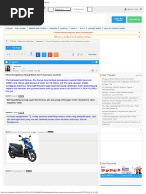 Spoiler for Langkah yang perlu dilakukan ketika motor (kredit) hilang: 1.Lapor ke Leasing (biasanya di Leasing ada ruangan untuk bagian asuransi) 2. Tanyakan apakah prosedur klaim boleh dilakukan oleh orang lain atau tidak (karena Polsek akan buat berita Laporan Kehilangan dan ada asuransi yang katanya harus yang bersangkutan {pemilik motor ...