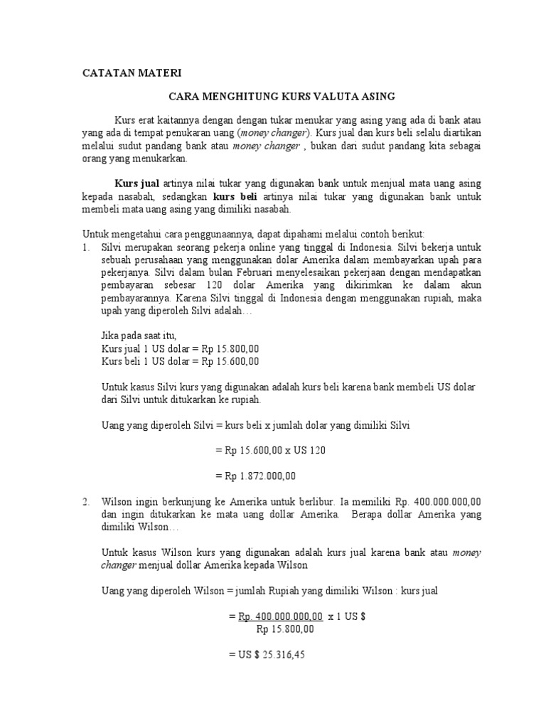 Cara Menghitung Kurs Jual dan Kurs Beli-Apabila Anda pernah menukar uang asing dengan Rupiah ataupun sebaliknya di bank atau money changer, pasti pernah mendengar istilah kurs jual dan kurs beli.Meskipun belum memahami dari kedua istilah tersebut. Mungkin pernah terpikirkan oleh Anda bahwa saat nilai kurs cuma ada 1 USD = 15.203 IDR.
