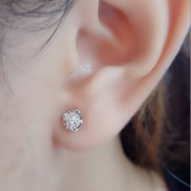 Anting Tusuk Permata Zircon Putih Anting Tindik Import Permata Anti Karat Selamanya Asli Titanium Shopee Indonesia