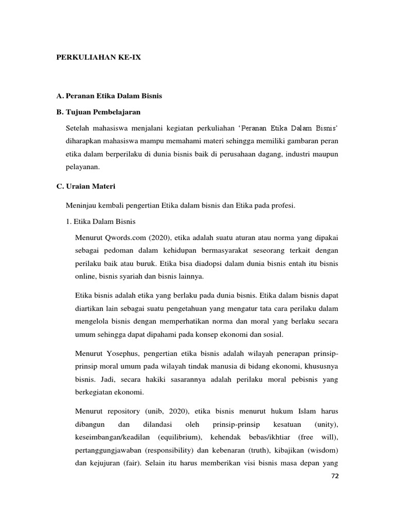 Peran etika dalam bisnis. Dec 09, 2019 · (3) Dalam menyusun perjanjian sebagaimana dimaksud pada ayat (1) dapat dikonsultasikan kepada LKPP. BAB IX. USAHA KECIL, PRODUK DALAM NEGERI, DAN PENGADAAN BERKELANJUTAN . Bagian Kesatu. Peran Serta Usaha Kecil . Pasal 65 (1) Usaha kecil terdiri atas Usaha Mikro dan Usaha Kecil. (2) Dalam Pengadaan Barang/Jasa, PA/KPA … Pengertian Etika Bisnis Etika bisnis adalah acuan bagi perusahaan dalam melaksanakan kegiatan usaha termasuk dalam berinterkasi dengan pemangku kepentingan (stakeholders). Etika bisnis adalah studi yang dikhususkan mengenai moral yang benar dan salah. Studi ini berkonsentrasi pada standar moral sebagaimana diterapkan dalam kebijakan, institusi, dan perilaku bisnis (Velasquez, 2005) Tidak ... Contoh Etika Bisnis yang Baik. Mungkin Anda pernah mendengar, bahwa ide satu perusahaan “dicuri” atau dijiplak oleh perusahaan lain. Praktik seperti itu mungkin saja terjadi jika tidak ada etika bisnis yang baik. Padahal, bisnis apa pun bebas berinovasi dalam menghasilkan produk, selama tidak meniru secara keseluruhan. May 26, 2014 · Dengan keseimbangan dalam pertimbangan a. keseimbangan antara keuletan dan pengertian b. keseimbangan antara pengetahuan dan tindakan c. kesimbangan antara kemajuan dan etika 7. Dan kelebihan dalam wawasan a. dalam membawakan produktivitas kerja pegawai b. dalam menjangkau gambaran masa depan c. Ketangguhan dalam menghadapi …