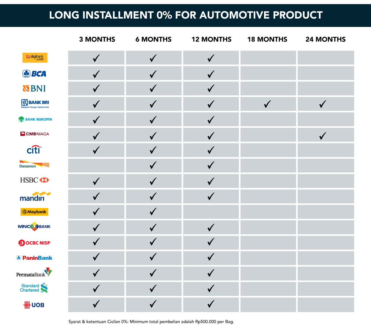 Di BCA Finance suku bunga 4,18 persen untuk tenor 1 tahun, 4,68 persen 2 tahun, 4,88 persen 3 tahun dan seterusnya. Contoh, kredit Toyota Agya tipe G A/T dengan harga Rp106,65 juta dengan masa ... Ternyata Ini Penyebab Bunga Cicilan Kredit Motor Lebih Besar Dari Mobil Jika dihitung, bunga cicilan motor umumnya lebih besar dibanding mobil. Untuk motor rata-rata di kisaran 25-30 persen per tahun. Simulasi kredit mobil baru di Carmudi akan coba dijelaskan dengan contoh. Misalnya, Eko membeli mobil baru seharga Rp200.000.000 secara kredit dengan tenor selama dua tahun. Lembaga pembiayaan tempat Eko mengajukan kredit memberikan syarat DP sebesar 25% dan suku bunga sebesar 6% per tahun. * Bayar pertama sudah termasuk biaya proses pembiayaan, asuransi, provisi, dan proteksi kredit. PT. BCA Finance berdiri pada tahun 1981 dengan kepemilikan saham oleh PT. Bank Central Asia dan Japan Leasing Corporation, dan diawali dengan nama PT. Central Sari Metropolitan Leasing Corporation (CSML ...