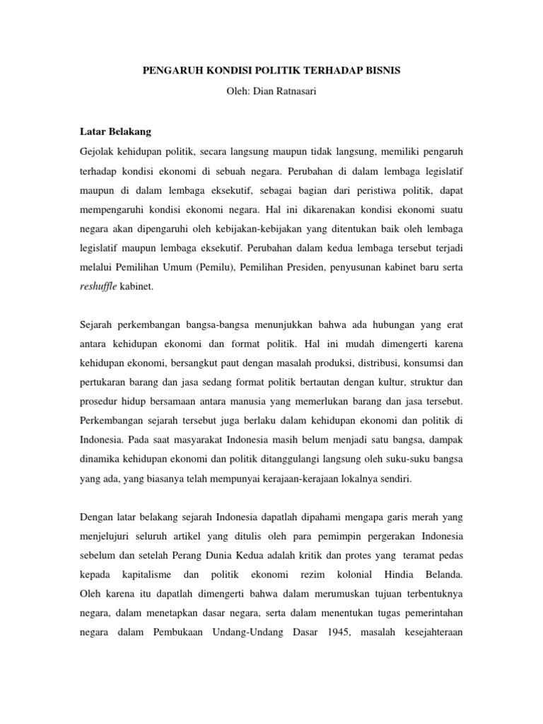 Pengaruh Politik Terhadap Bisnis Di Indonesia - Free download as Word Doc (.doc / .docx), PDF File (.pdf), Text File (.txt) or read online for free.