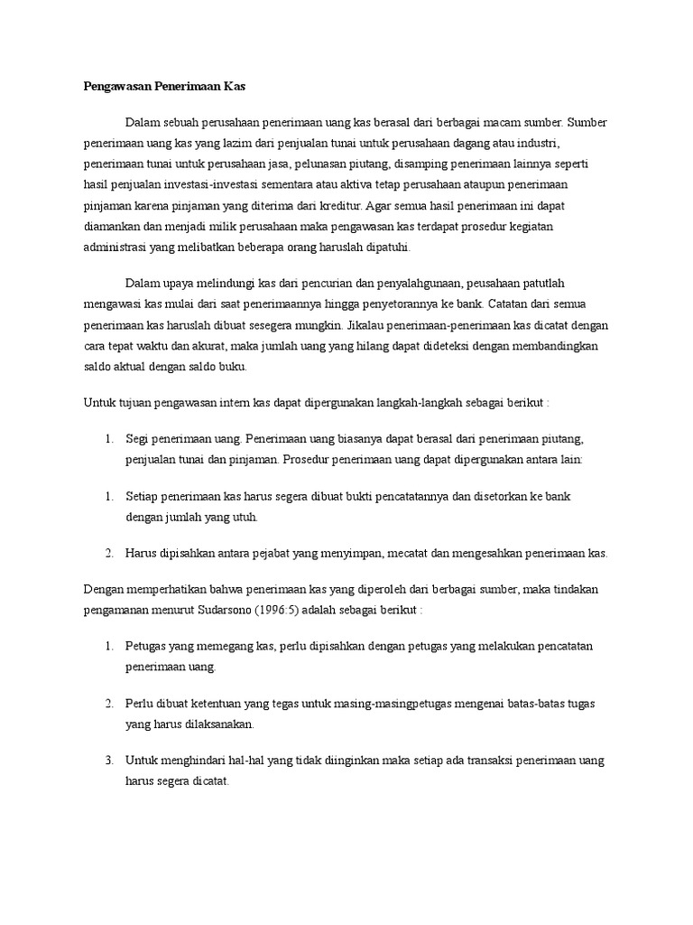 Petugas yang menyimpan bukti beserta dokumen pendukung pengeluaran dana kas kecil adalah. bukti pengeluaran kas beserta bukti -bukti pendukung . Selain itu menyimpan bukti -bukti pengeluaran uang beserta bukti -bukti pendukung ke dalam suatu file yang disebut dengan file bukti pengeluaran uang yang telah dibayar. Dalam menyimpan bukti -bukti pengeluaran uang ini, sebelumnya diurutkan menurut urutan nomor urut bukti pengeluaran uang. d. b) Menyerahkan formulir permintaan pengisian kembali dana kas kecil yang telah diisi kepada bagian hutang, dilampiri dengan bukti pengeluaran kas kecil beserta dokumen pendukung untuk dana yang telah digunakan. c) Menerima cek dan bukti pengeluaran kas lembar 3 dari bagian kas a. Dokumen atau bukti pemakaian Kas kecil ada dua yakni bukti pengeluaran Internal dan bukti pengeluaran Eksternal. Peralatan atau dokumen yang diperlukan dalam pengelolaan dana kas kecil yaitu 1. Bukti kas keluar Dokumen ini berguna agar perintah pengeluaran kas dari fungsi akuntansi pada fungsi kas besar yang tercantum dalam dokumen tersebut. Q. Kas kecil adalah sejumlah uang tunai yang disisihkan dalam perusahaan dan berfungsi untuk melayani bentuk-bentuk pengeluaran tertentu. Pada umumnya, jenis-jenis pengeluaran yang dilakukan melalui dan kas kecil , yaitu pengeluaran yang sifatnya tidak besar dan pengeluaran -pengeluaran tersebut dilakukan dengaan pihak bank.