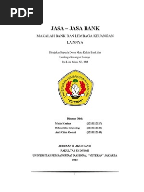 Jul 29, 2019 · 1. Jasa-jasa bank lainnya merupakan pendukung utama dari kegiatan simpanan dan pinjaman. Jenis dari jasa bank sangatlah beragam. Saudara diminta untuk menjelaskan hal-hal apa saja yang memengaruhi kelengkapan jasa suatu bank dalam melayani nasabahnya.