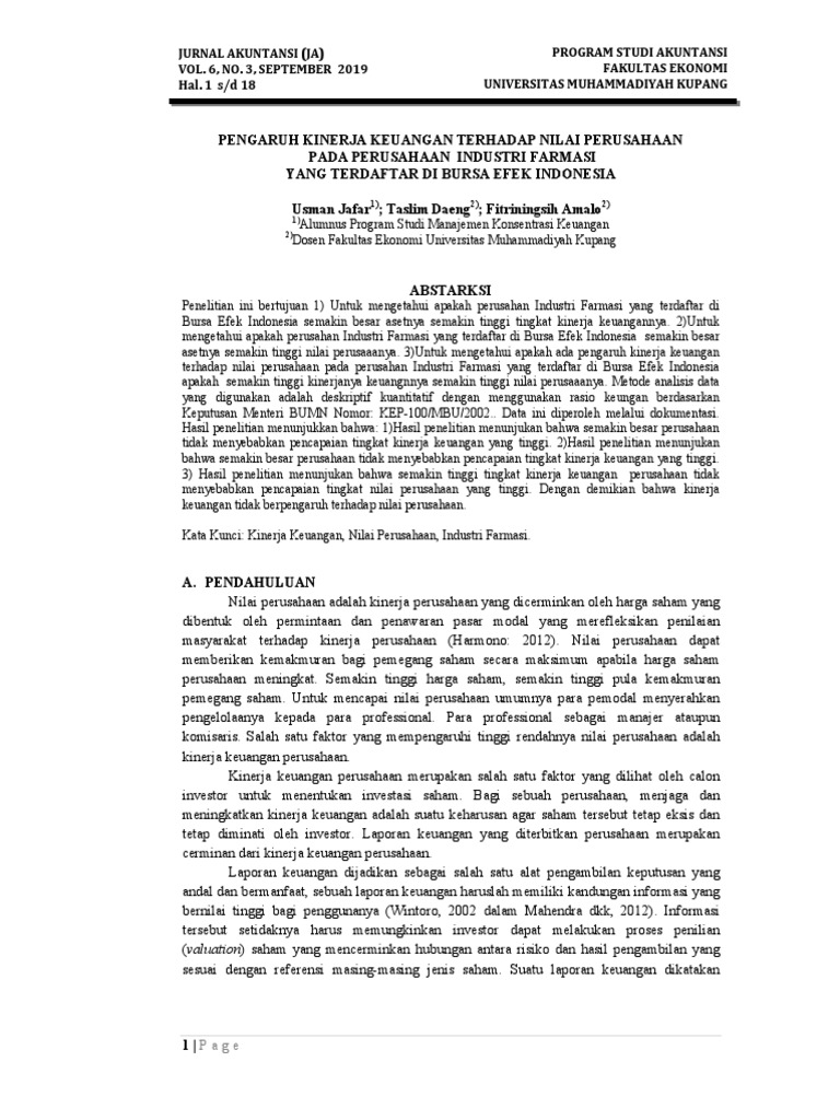 by MF Gere · 2015 · Cited by 16 — PENGARUH KINERJA KEUANGAN TERHADAP HARGA SAHAM PERUSAHAAN MANUFAKTUR DI BURSA EFEK INDONESIA. Maria Fitriana Gere; Tri Yuniati.