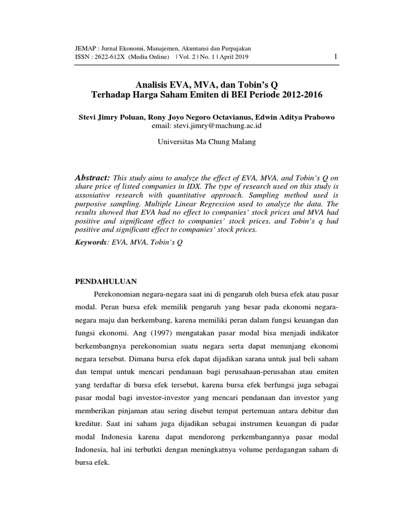 Jurnal pengaruh kinerja keuangan terhadap harga saham. Home / Archives / Vol. 10 No. 02 (2021): Jurnal Manajemen Terapan dan Keuangan (MANKEU) / Article PENGARUH ROA, DER, NPM TERHADAP HARGA SAHAM PADA SEKTOR KEUANGAN (FINANCE) YANG TERDAFTAR DI BEI PERIODE 2015-2019 Pengaruh Kinerja Keuangan Perusahaan terhadap Return Saham untuk mengkaji hubungan kinerja keuangan perusahaan dengan return saham . Tinjauan Pustaka dan Hipotesis Berikut adalah hasil penelitian yang berkaitan dengan kinerja keuangan dan return saham , yaitu sebagai berikut: hasil penelitian Ganto, et al. (2008) Pengaruh Kinerja Keuangan Terhadap Harga Saham ( Studi Pada Perusahaan Ritel Yang Terdaftar Di Bei the Effect of Financial Performance on Share Price ( Study on. Jurnal Berkala Ilmiah Efisiensi, 16(01), 883-894. Kinerja keuangan merupakan faktor penting untuk menarik investor dalam membeli saham . Harga saham mengalami penurunan dibandingkan sebelum adanya kasus covid-19. Sedangkan untuk volume transaksi saham juga menunjukkan perbedaan yang signifikan. Contohnya dimana harga saham PT.