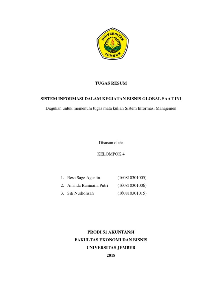 Peranan sistem informasi dalam bisnis saat ini. 17 Nov 2021 — Sistem informasi memegang peranan penting hampir di seluruh sektor bisnis di dunia. Berperan dalam menunjang kegiatan bisnis operasional, ... TUGAS RESUM. SISTEM INFORMASI DALAM KEGIATAN BISNIS GLOBAL SAAT INI. Diajukan untuk memenuhi tugas mata kuliah Sistem Informasi Manajemen. Disusun oleh:. 30 May 2016 — Sistem informasi dapat mengombinasikan informasi untuk membantu manajer menjalankan bisnis dengan lebih baik, informasi yang sama dapat membantu ... Bertaruh di situs judi bola sebenarnya bukan hal baru, dari awal kemunculan permainan sepak bola bahkan taruhan bola sudah sangat populer. Tidak sah menikmati pertandingan sepak bola tanpa bertaruh. Mungkin hal ini juga yang sering anda rasakan sebagai penggila sepak bola dimana setiap ada pertandingan dalam sebuah pertandingan pasti anda akan mengunggulkan salah satu tim atau klub sepak bola tertentu. Bahkan belum juga membuktikan bahwa hal itu dilakukan jika Anda tidak bergabung dengan situs...