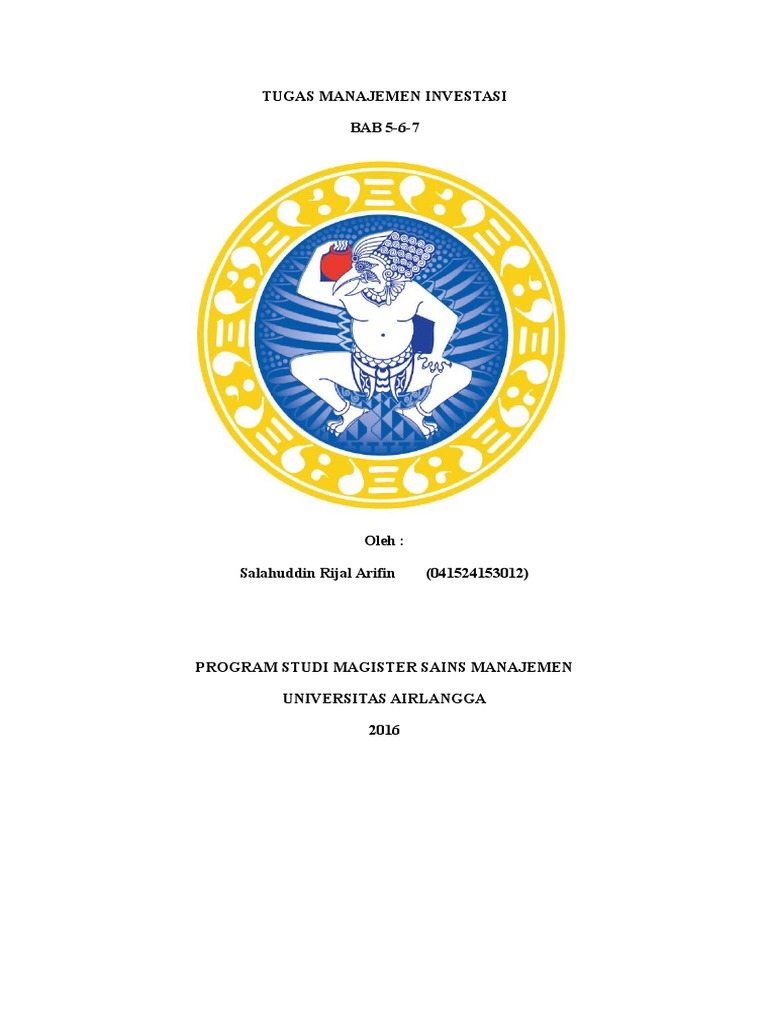 Manajemen investasi dan portofolio pdf. Mata ajar ini membahas investasi pada aset finansial, bagaimana pengambilan keputusan investasi, pengelolaan dan penilaian kinerja investasi. Investor akan memutuskan pilihan investasi pada aset keuangan dari berbagai alternatif investasi yang ada. Berbagai investasi tersebut memiliki tingkat imbal hasil yang tidak pasti. Pemahaman atas konsep risiko dan tingkat pengembalian dari sekuritas ... MANAJEMEN PORTOFOLIO. Alasan memilih manajemen portofolio ini karena alasan sebagai beirikut: 1. CFA (Chartered Financial Analyst) merupakan institusi terkenal yang mengembangkan standar professional investasi untuk para anggotanya. 2. Manajemen portofolio ini menyediakan tahapan sistematik yang mudah dipahami. 3. Pengertian Manajemen Portofolio. Pengertian manajemen portofolio adalah proses terintegrasi yang terdiri atas gabungan beberapa langkah yang diimplementasikan secara konsisten untuk membuat dan mengelola portofolio aset untuk mencapai tujuan tertentu dari seorang investor.. Untuk menghasilkan manajemen portofolio yang baik, maka diperlukan adanya perpaduan aset investasi yang tepat sambil ... Download Analisis Investasi Dan Portofolio PDF (9.00 MB) - SamPDF Unduh Analisis Investasi Dan Portofolio PDF secara gratis di SamPDF. Detail Analisis Investasi Dan Portofolio PDF dapat kamu nikmati dengan cara klik link download dibawah dengan mudah tanpa iklan yang mengganggu. (DOC) Analisis Manajemen Investasi dan Portofolio | shira ...