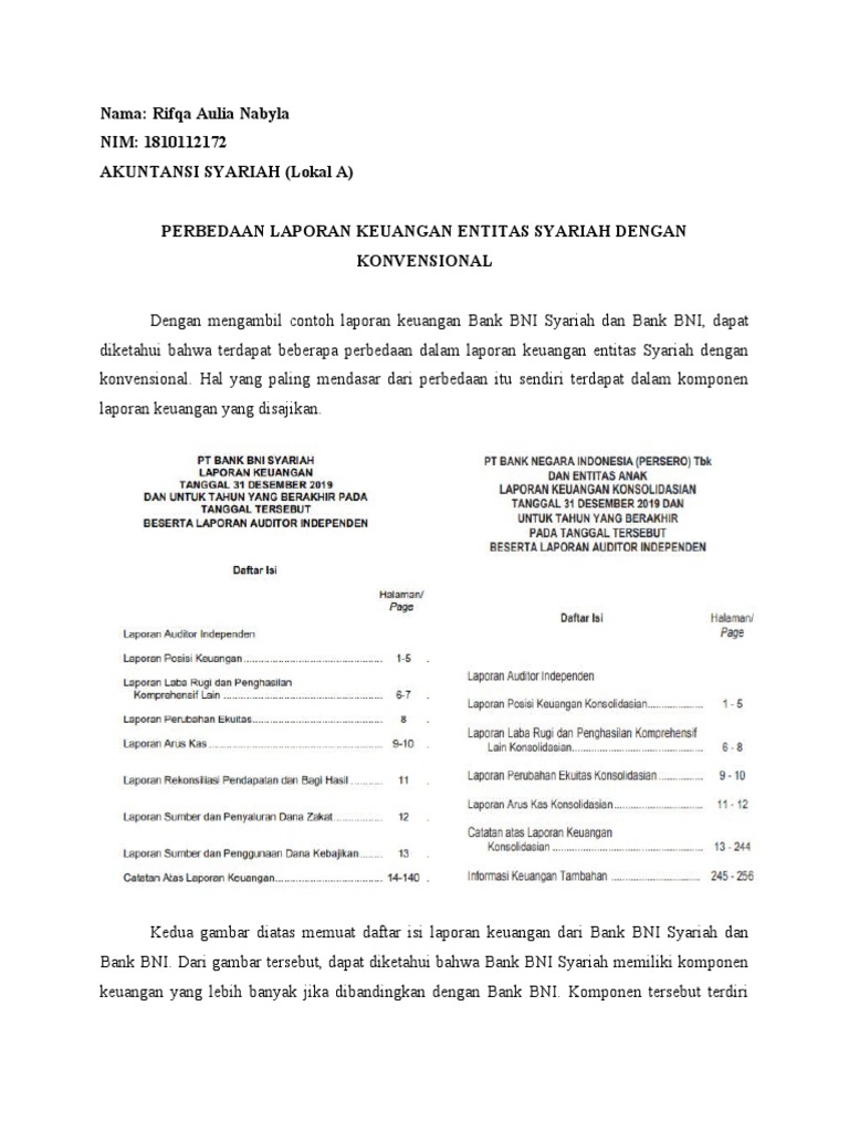 Sedangkan bank konvensional menggunakan sistem bunga yang sifatnya tetap. Bank syariah berinvestasi hanya pada usaha yang halal, sedangkan pada bank konvensional tidak dibatasi/bebas nilai. Pada bank syariah besaran bagi hasil berubah-ubah tergantung kinerja usaha, sedangkan pada bank konvensional besaran bunga tetap. #MuamalatArtikel Baca Juga : Perbedaan pertama ini sangat mendasar karena masih berhubungan dengan dasar hukum terbentuknya dua perbankan tersebut. Secara ringkas, dasar hukum yang dipakai di bank syariah adalah: 1. UU No. 7 tahun 1992 tentang perbankan (awal mulanya) 2. Selanjutnya ada amandemen sehingga dasar hukumnya menjadi UU No. 10 tahun 1998, juga UU No. 21 tahun 2008 tentang perbankan syariah. Landasan hukum inilah yang menjadi pengaturan khusus kegiatan yang dilakukan di perbankan syariah. 3. Tunduk pada BI dan OJK. 4. Tunduk pada fatwa DSN– MUI. Sementara itu, bank konvensional hanya memiliki landasan hukum berikut ini: 1. UU perbankan. 2. Tunduk pada peraturan yang dikeluarkan oleh BI dan OJK. Artinya, batasan perbankan yang sesuai syariat islam jauh lebih banyak. Sedangkan konvensional lebih bebas karena batasan hukumnya lebih sedikit. Abstract. Read online. Penelitian ini bertujuan untuk mengetahui perbedaan kinerja keuangan Bank Syariah dan Bank Konvensional di Indonesia berdasarkan rasio CAR, NPL, LDR dan BOPO untuk tahun 2008 – 2017 dan untuk mengetahui kinerja keuangan mana yang lebih baik antara kinerja keuangan Bank Syariah dan Bank Konvensional di Indonesia untuk periode … 07.05.2017 · Namun terjadi perbedaan antara Bank Syariah dan konvensional seperti yang sudah di paparkan di atas yaitu tentang akad. Dan dapat di simpulkan bahwa produk Bank Syariah lebih berfariasi dibandingkan …