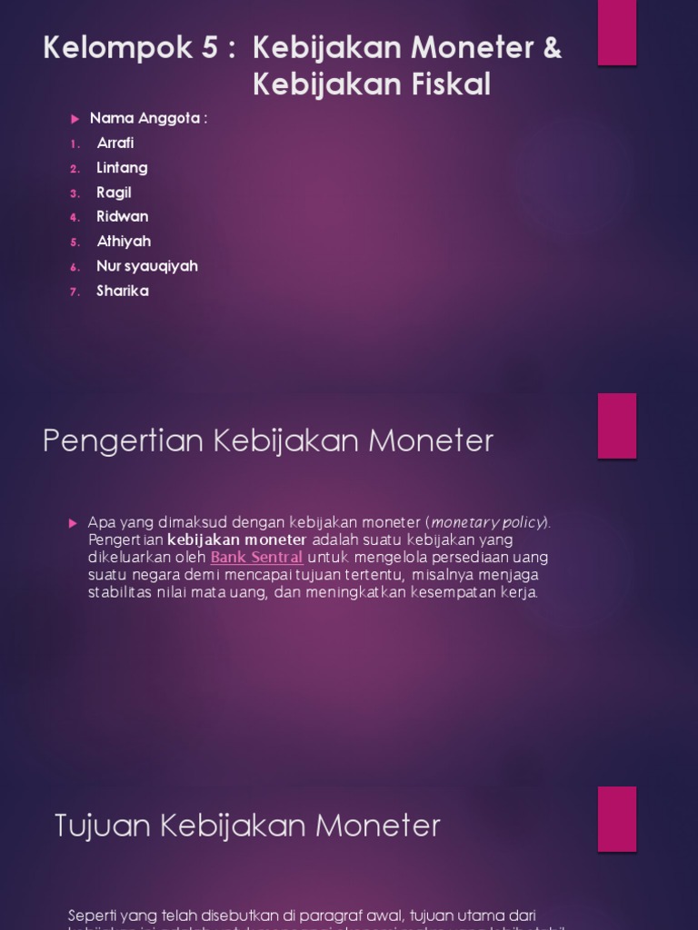 Play this game to review Social Studies. Bank Indonesia tidak sembarangan dalam mencetak uang, tidak terlalu banyak dan tidak terlalu sedikit atau seimbang. Hal ini dilakukan untuk mencapai kestabilan ekonomi. Kebijakan yang dilakukan untuk mengendalikan jumlah uang beredar oleh bank sentral tersebut merupakan kebijakan. . Tindakan yang dilakukan pemerintah melalui bank sentral dengan cara menjual surat berharga disebut Kebijakan bank yang berhubungan dengan perubahan tingkat suku bunga disebut Kebijakan yang dilakukan bank sentral untuk mengendalikan jumlah uang yang beredar Salah satu cara mengatasi inflasi adalah dengan menaikkan pajak kebijakan ini dinamakan 17.05.2019 · Menurut teman - teman kenapa bank central harus menaikkan atau menurunkan suku bunga ? Forex Community Place. Login/Register Register Restore Password. Forum. Today's Posts Forum Rules FAQ Calendar Community Groups My albums Friends & contacts Member list Forum Actions Mark ... Pengertian Kebijakan moneter adalah kebijakan pemerintah melalui bank sentral untuk menambah atau mengurangi jumlah uang yang beredar dalam rangka mengendalikan perekonomian. 3. Tujuan o Menjaga stabilitas ekonomi. o Menjaga stabilitas harga. o Meningkatkan kesempatan kerja. o Memperbaiki posisi neraca perdagangan dan neraca …