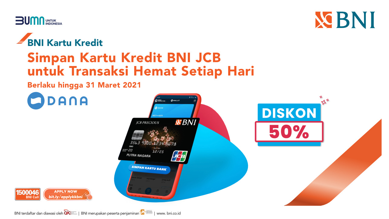 JAKARTA. Bank Negara Indonesia (BNI) meluncurkan Kartu Kredit BNI JCB Platinum. Kartu ini merupakan hasil kerjasama dengan Japan Credit Bureau (JCB) Internasional, penyedia jasa pembayaran kartu kredit berskala internasional asal Jepang yang disahkan pada 7 Mei 2013. ...Bayar Kartu Kredit BNI - Metode pembayaran tagihan kartu kredit BNI memang bukan hanya dapat dilakukan melalui bank BNI saja, melainkan Bagi kalian yang hendak melakukan cek tagihan kartu kredit BNI terlebih dahulu sebelum Via SMS. Visa/Master/JCB(spasi)TAG(spasi)4 digit kartu kredit. Kartu kredit BNI JCB Precious memberikan berbagai benefit dan kemudahan bertransaksi dengan merchant yang bekerja sama dengan JCB dalam traveling, shoping, dan lainnya. Promo berlaku untuk seluruh Kartu Kredit BNI, Kartu Debit BNI, dan yap! JCB, Corporate dan iB Hasanah BAKERZIN Periode : 5 - 6 Juli 2018 Lokasi :Seluruh outlet Bakerzin Mekanisme : • Potongan Rp72ribu minimum transaksi Rp350ribu • Promo tidak berlaku kelipatan • Promo berlaku untuk...