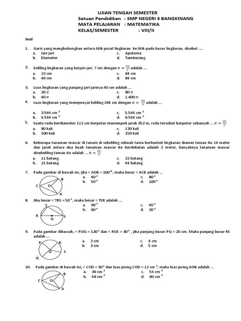 (PDF) Kumpulan Soal Soal PAT/ UKK/ UAS SMP/ MTS Kelas 8 ... Translate PDF Kumpulan Soal Soal PAT/ UKK/ UAS SMP/ MTS Kelas 8 Semester 2/ Genap Soal Soal Latihan Penilaian Akhir Tahun/ Ujian Kenaikan Kelas/ Ujian Akhir Semester Sekolah Menengah Pertama/ Madrasah Tsanawiyah Kelas VIII Kurikulum 2013 dan 2006 ( KTSP ) Silahkan Di Download/ Unduh Berkasnya, Dengan Mengklik Tautannya.