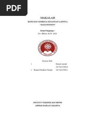 Makalah Dana Pensiun ~ atenk park fals Program dana pensiun adalah dana yang dibentuk untuk pembayaran karyawan setelah tidak bekerja lagi karena memasuki masa pensiun. Dengan adanya dana pensiun karyawan peserta kelak akan tetap memperoleh jumlah penghasilan tertentu, sekalipun sudah tidak bekerja lagi. b. Tujuan dan Funsi Dana Pensiun lembaga keuangan syariah non bank: MAKALAH DANA PENSIUN Dana pensiun adalah sekumpulan aset yang dikelola dan dijalankan oleh suatu lembaga untuk menghasilkan suatu manfaat pensiun , yaitu suatu pembayaran berkala yang dibayarkan kepada peserta pada saat dan dengan cara yang ditetapkan dalam ketentuan yang menjadi dasar penyelenggaraan program pensiun. Makalah Dana Pensiun Syariah.docx - DANA PENSIUN SYARIAH ... Kegiatan perusahaan dana pensiun adalah memungut dana dari iuran yang dipotong dari pendapatan karyawan suatu perusahaan. Iuran ini kemudian diinvestasikan lagi ke dalam berbagai kegiatan usaha yang dianggap paling menguntungkan. Bagi perusahaan dana pensiun, iuran yang dipunguti dari karyawan suatu perusahaan tidak dikenakan pajak.