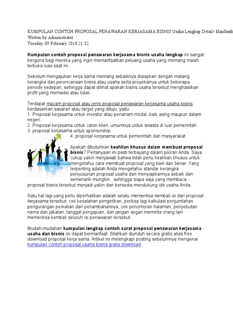 Ini Tips Membuat Proposal Kerjasama Bisnis ... - asriman.com Terlebih, banyak contoh proposal kerjasama bisnis properti yang mereka pelajari selama ini, ternyata tidak sesuai dengan yang diharapkan para investor. Bagi developer yang masih belum menguasai pembuatan proposal kerjasama bisnis properti, berikut beberapa tips yang bisa dijadikan petunjuk: Pahami Trust, Safety dan Profiability