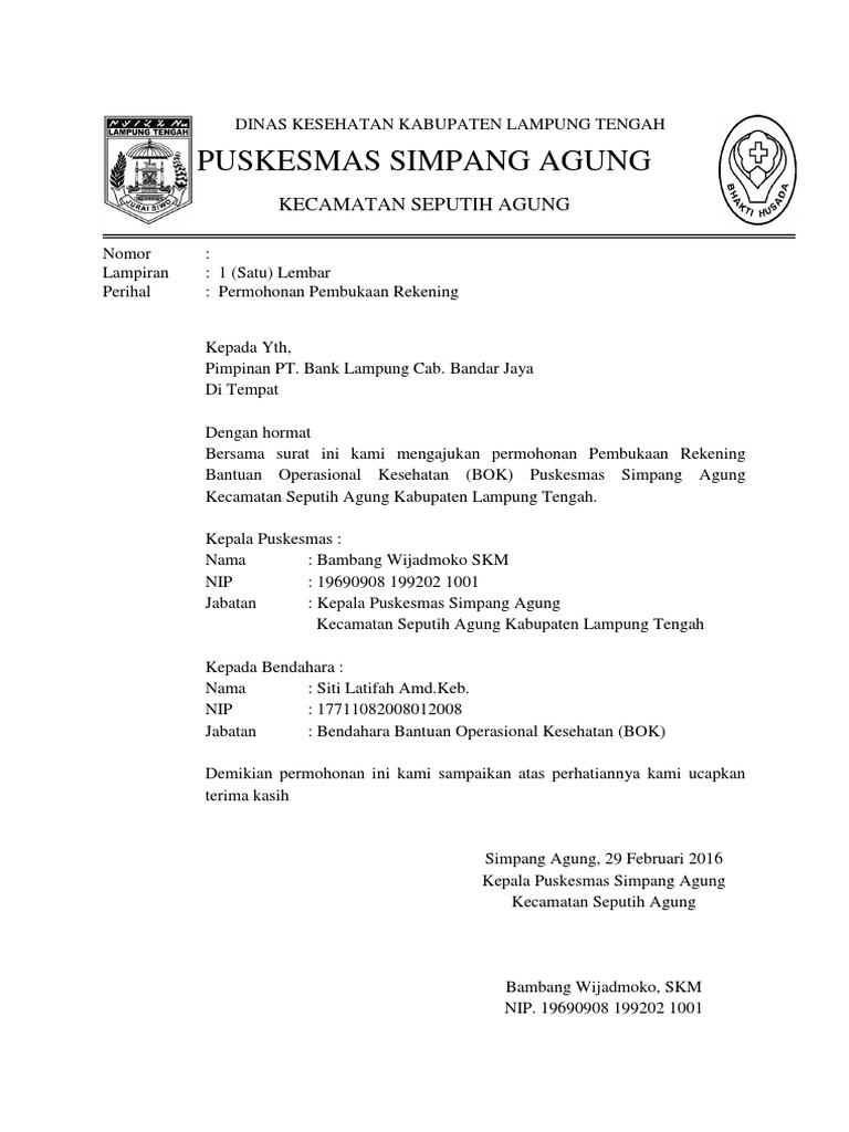 (DOC) Contoh surat permohonan pembukaan rek - Academia.edu Contoh surat permohonan pembukaan rekening kop madrasah no : …../MI 2015 SIFAT : Istimewa Lampiran :- Perihal : PERMOHONAN PEMBUKAAN REKENING BOS/BOP KepadaYth. Surat keputusan direktur jenderal pendidikan islam nomor : 508...
