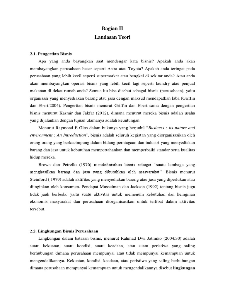 18 Pengertian Lingkungan Menurut Para Ahli Dan Fungsinya ... Pengertian lingkungan menurut KBBI mencakup beberapa hal. Pertama, lingkungan adalah daerah atau Kawasan yang termasuk di dalamnya. Kedua, lingkungan adalah sebuah bagian wilayah di dalam kelurahan yang merupakan lingkungan kerja pelaksanaan pemerintahan desa. Ketiga, lingkungan adalah semua hal yang mempengaruhi pertumbuhan manusia atau hewan. BAB I BISNIS DAN LINGKUNGAN BISNIS 1. Pengertian ... - UIN SGD Untuk pengertian bisnis kita bisa melihat kepada beberapa definisi yang telah diberikan oleh para ahli bisnis, baik praktisi maupun akademisi, mulai era dulu sampai beberapa periode terkini. Misalnya pengertian yang diberikan Ebert, dia mendefinisikan bisnis Pengertian Lingkungan Bisnis - Menurut Ahli 1:45 AM Bisnis Add Comment. Advertisement. Pengertian Lingkungan Bisnis. Lingkungan bisnis perusahaan terdiri dari pelaku-pelaku dan kekuatan –kekuatan yang mempengaruhi kemampuan perusahaan untuk mengembangkan dan mempertahankan transaksi dan hubungan yang menguntungkan dengan pelanggan sasaran. Terdapat banyak faktor-faktor lingkungan yang ... 13 Pengertian Strategi Pemasaran Menurut Para Ahli Lengkap Pengertian Strategi Pemasaran Menurut Para Ahli. 1. Kurtz. Strategi pemasaran ialah salah satu program keseluruhan perusahaan dalam menentukan target pasar dan memuaskan konsumen dengan membangun kombinasi elemen dari bauran pemasaran yakni produk, distribusi, promosi dan harga. 2.
