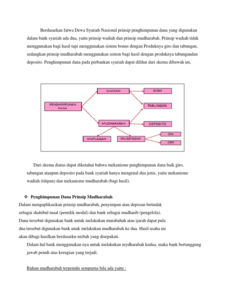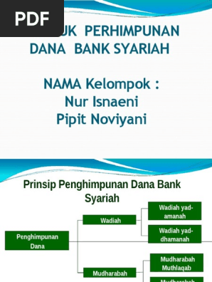 (DOC) Makalah Penghimpunan Dana Bank Syariah | Nuril ... Dalam bank syariah penghimpunan dana dari masyarakat dilakukan tidak membedakan nama produk tetapi melihat pada prinsip yaitu prinsip wadiah (titipan nasabah) dan prinsip mudharabah (bentuk kerja sama antara dua atau lebih pihak).