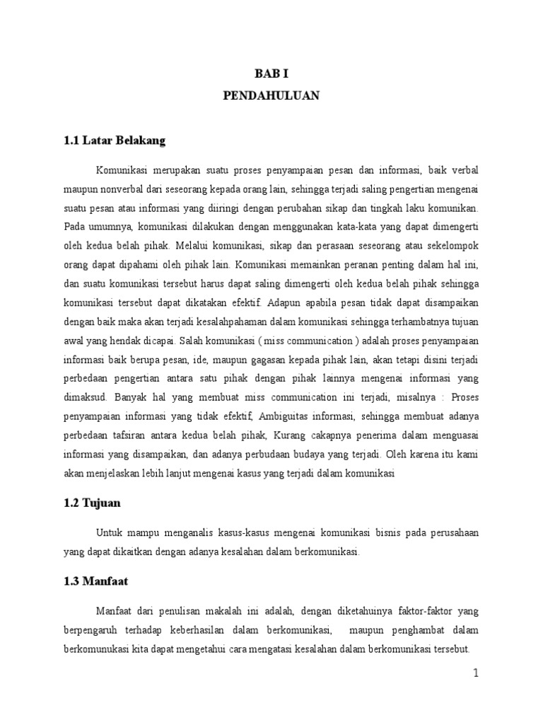 Contoh Makalah Komunikasi Bisnis Lintas Budaya Tugas Mata Kuliah Komunikasi Bisnis. Muhammad Irsyad Gulam Bustomi 185020201111049. Contoh Kasus Komunikasi Lintas BudayaKetika Adi lulus sekolah menengah atas SMA Adi memutuskan untuk melanjutkan studi ke Jawa Timur tujuan Adi datang ke daerah Pasuruan. (DOC) Contoh kasus, Komunikasi | Ifadhatul ... - Academia.edu Penyelesaian kasus: 1. Membentuk suatu system informasi yang terstruktur, agar tidak terjadi kesalahan dalam komunikasi. 2. Buat komunikasi dua arah antara atasan dan bawahan menjadi lancer dan harmonis, misalnya dengan membuat rapat rutin, karena dengan komunikasi yang dua arah dan intensekan mengurangi masalah di lapangan. 3. Tugas 4 - Softskill Komunikasi Bisnis (Contoh Kasus ... Contoh Kasus Pentingnya Komunikasi Lintas Budaya dalam dunia Bisnis.docx Studi Kasus Komunikasi Freeport, komunikasi, manajemen, freeport, study kasus, case study, ekonomi, Komunikasi Bisnis ( Rmk Laporan Dan Proposal Bisnis )( Kelompok 5)