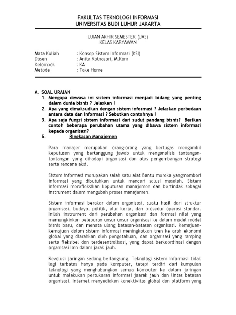 Peran Teknologi Informasi dalam Perusahaan dan Contohnya ... Teknologi Informasi disingkat TI merupakan teknologi yang dipakai oleh manusia untuk mengolah data. Pengolahan data oleh TI mencakup prosesnya, cara mendapatkannya, bagaimana menyusunnya, sampai menyimpan data hingga akhirnya menyuguhkan informasi akurat yang dapat membantu pekerjaan manusia. Data yang diolah menggunakan TI bisa digunakan mempermudah manusia dalam urusan bisnis, urusan pribadi, bahkan urusan negara. Dalam bentuknya, TI terwujud melalui software dan hardware komputer. Selanjutnya, teknologi informasi salah satunya dimanfaatkan dalam bentuk Enterprice Resource Planning (ERP). Selain itu, masih ada contoh satu lagi produk yang memanfaatkan TI dan setiap ornag bisa jadi memilikinya di komputernya, yaitu Microsoft Access.
