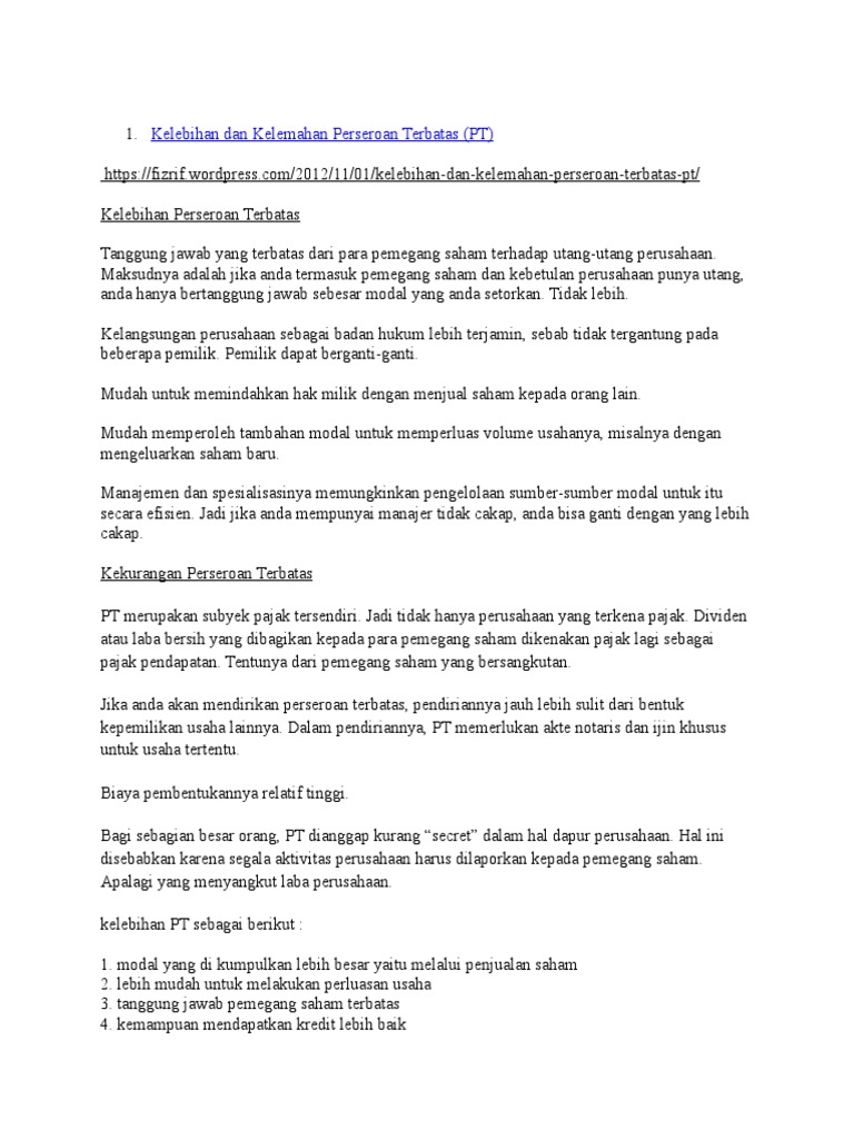 libera.id › blogs › kelebihan-kekurangan-ptKelebihan & Kekurangan PT yang Perlu Diketahui ... - Libera Itulah beberapa kelebihan dan kekurangan mendirikan PT sebagai badan usaha. Meski ada kekurangannya, PT menjadi salah satu badan usaha dengan kelebihan yang paling banyak. Namun, untuk pemilihannya dapat disesuaikan dengan kebutuhan bisnis Anda.