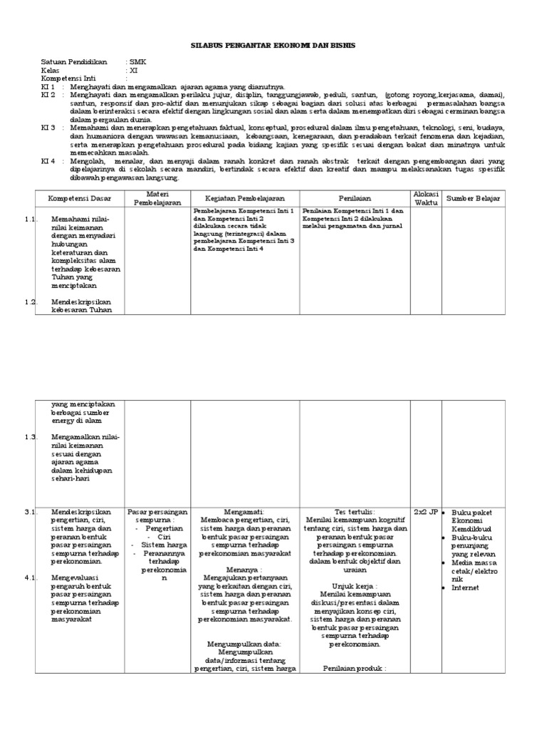 RPP Pengantar Ekonomi Bisnis - PDF Free Download Contoh bentuk RPP kurikulum 2013 pelajaran Pengantar Ekonomi dan Bisnis kelas XI AK/AP/PM SMKN 47 JAKARTA, KD 3.1 dan 4.1 dengan Topik Pasar 1. Buku Paket Pengantar Ekonomi dan Bisnis SMK/MA Kelas XI Kurikulum 2013, Disusun Oleh : Alam S 2. Internet. H. Media Pembelajaran.