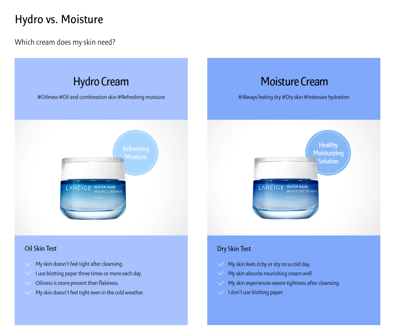 Laneige Radian-C Cream VS Laneige Water Bank Moisture Cream Ex Detailed comparison of Laneige Radian-C Cream versus Laneige Water Bank Moisture Cream Ex.