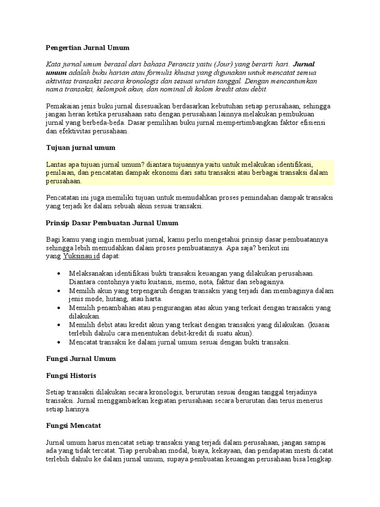 Cara Memposting Jurnal Umum Ke Buku Besar Bentuk Skontro dan... Sebagai dasar penggolongan transaksi yang ada pada jurnal sebelumnya atau jurnal umum. Sebagai bahan kelengkapan dalam penyusunan laporan keuangan. 4 Pembelian peralatan salon sebesar Rp3.000.000,00 secara kredit. 6 Dikeluarkan uang tunai sebesar Rp50.000,00 untuk membayar...