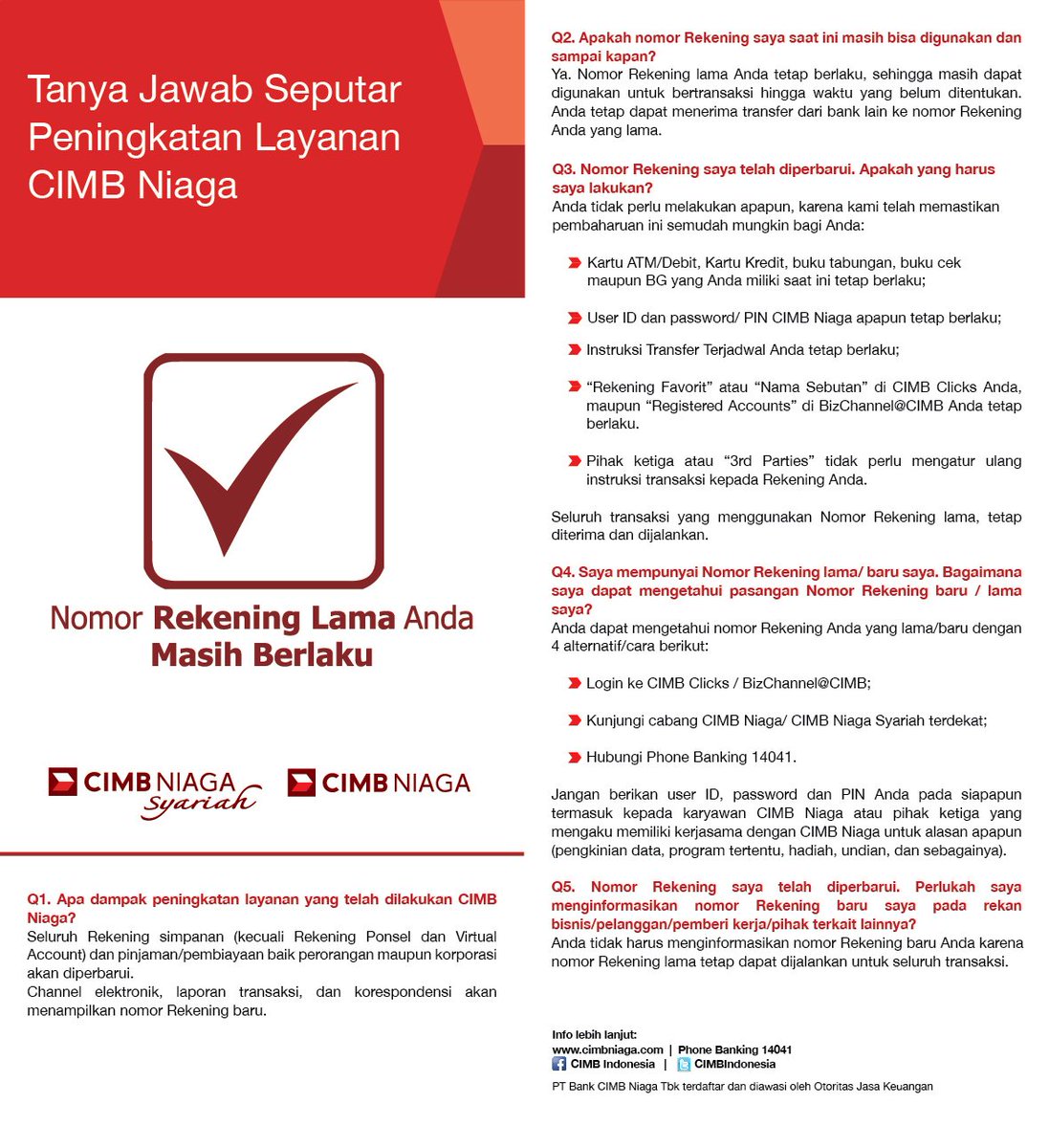 Pengajuan Program Keringanan Pembiayaan ... - CIMB Niaga Nasabah memastikan nomor handphone dan email adalah yang terdaftar di sistem Bank serta bersedia melakukan pengkinian data apabila belum terdaftar di sistem melalui Layanan CIMB Niaga14041 atau Cabang CIMB Niaga. Untuk mengikuti Program ini, Nasabah harus mengajukan permohonan melalui kanal resmi Bank