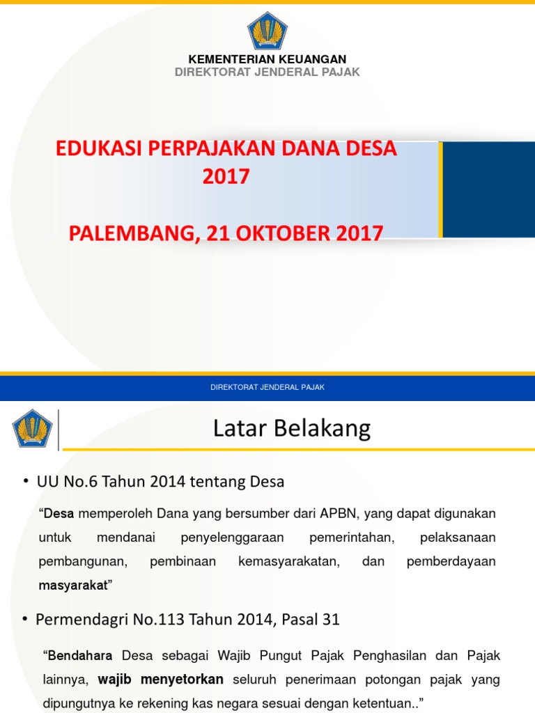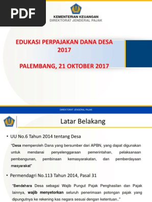 Konsultasi Pajak: Bagaimana Perhitungan Pajak Dana Desa? Aug 01, 2016 · Liputan6.com, Jakarta - Yth Konsultan Pajak, Bagaimana ketentuan pajak penggunaan dana desa yang bersumber dari APBN. Contoh kegiatannya adalah pembangunan jalan desa. Pertanyaan yang ingin kami sampaikan adalah: Apakah PPN dipotong langsung dari total jumlah anggaran kegiatan atau berdasarkan pembelian barang yang wajib kena pajak saja.
