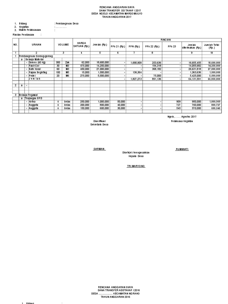 35 Contoh Perhitungan Pajak Dana Desa - Info Uang Online Contoh perhitungan pajak dana desa. Kepala desa gaji dan tunjangan per bulan rp 500000000. Apakah ppn dipotong langsung dari total jumlah anggaran kegiatan atau berdasarkan pembelian barang yang wajib kena pajak saja. Ada banyak sekali bendahara yang masih bingung mengenai pajak terkait dana desa oleh karena itu mimin kali ini akan share ...